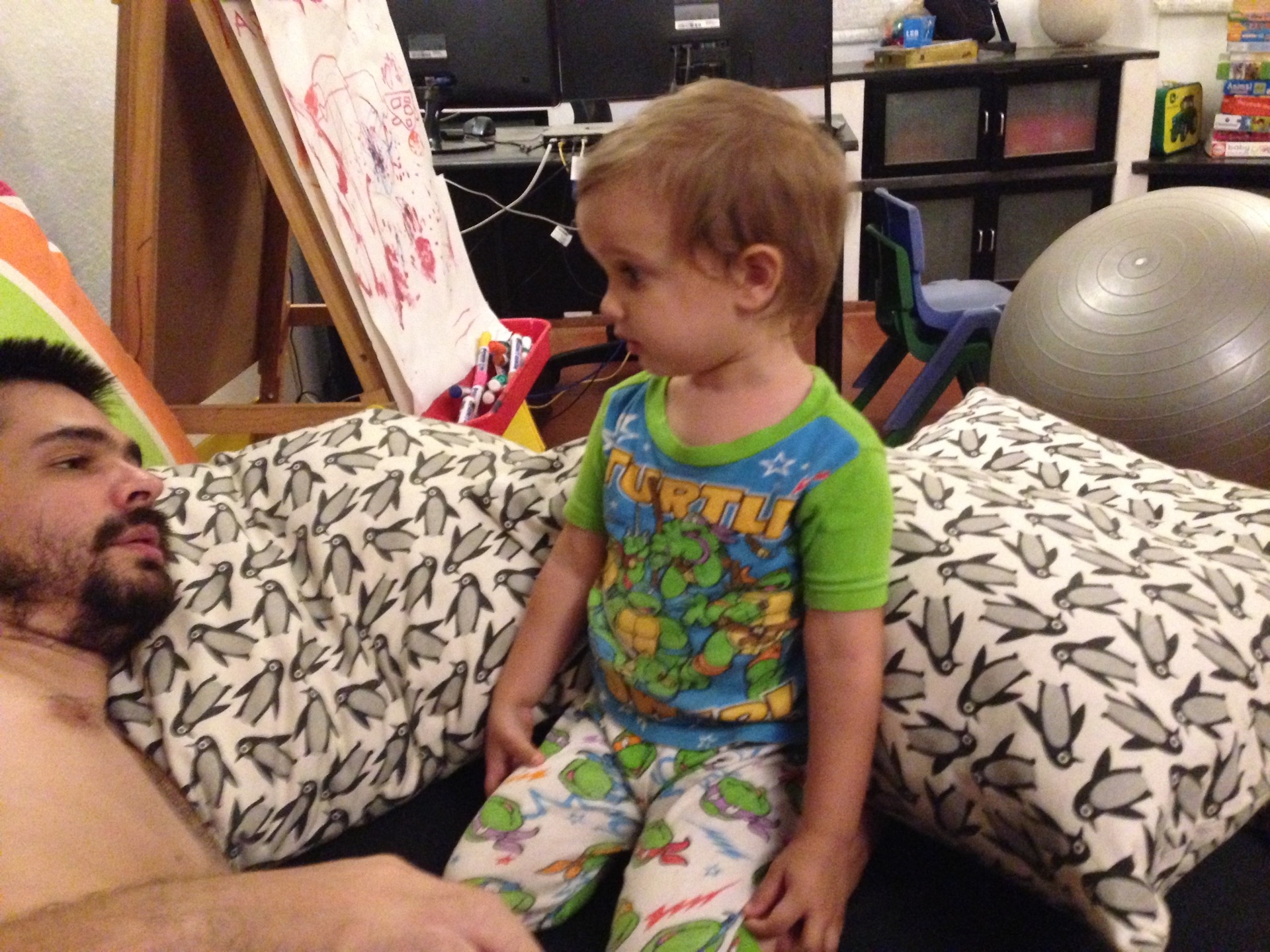 Posted on March 29, 2017 2:53 pmJune 21, 2017 2:54 pmEn pyjama Sienna est trop fière d’avoir un pyjama tortues ninjas!