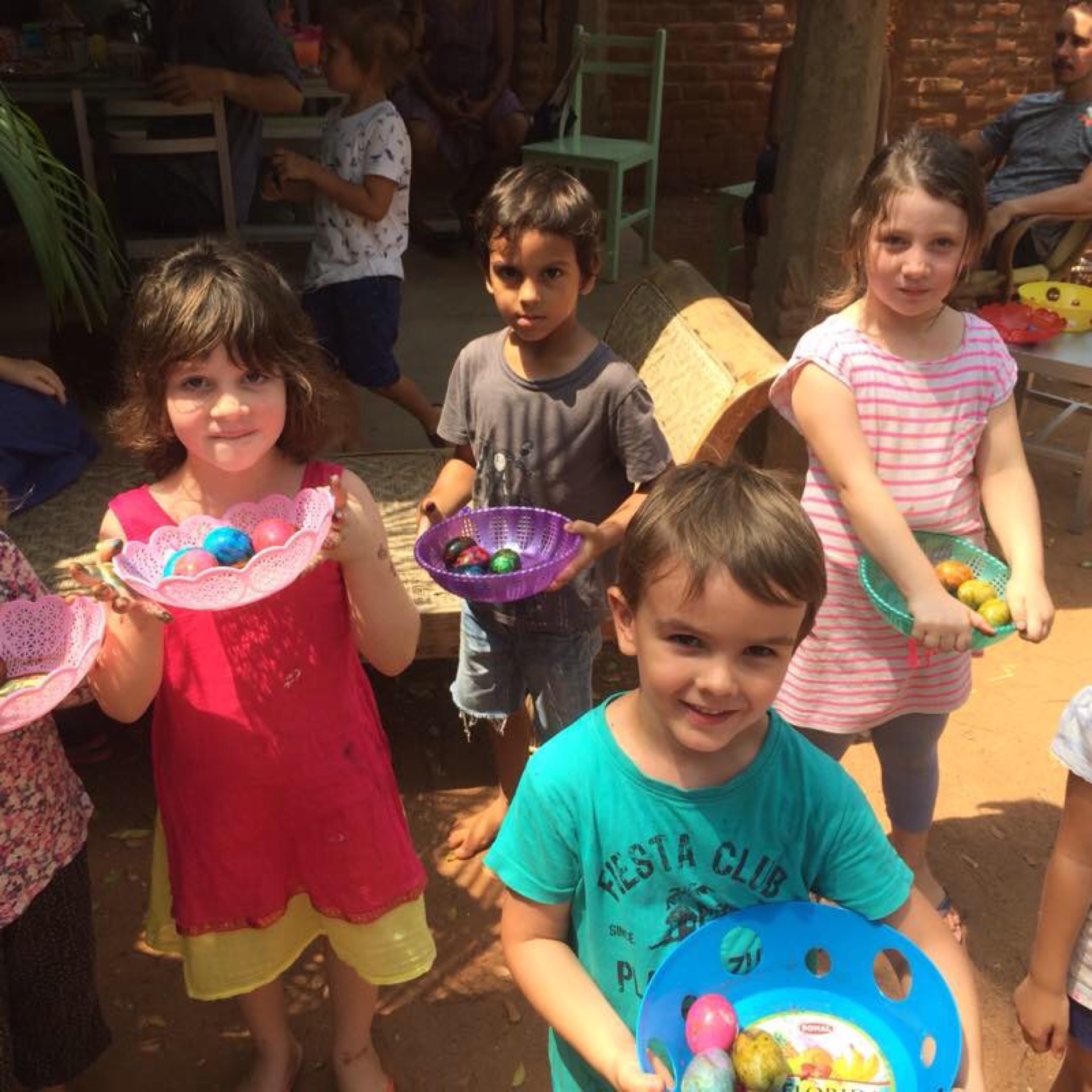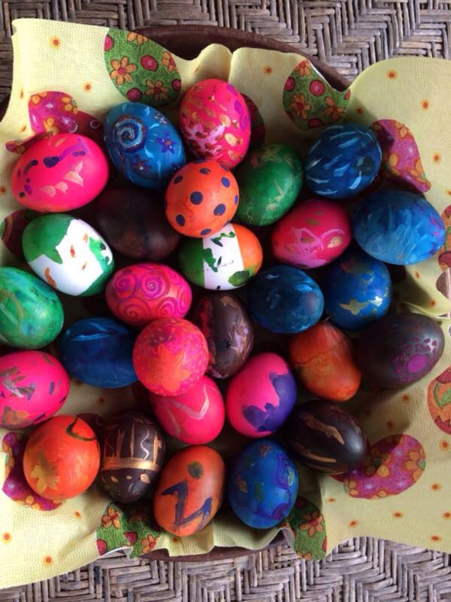 Posted on April 16, 2017 3:04 pmJune 23, 2017 3:17 pmPacques!! Lili, Ipshi et Baba sont venus fêter Pacques avec nous. On a commencé par peindre des oeufs: Puis les cloches sont passées! Et enfin, le chocolat!!