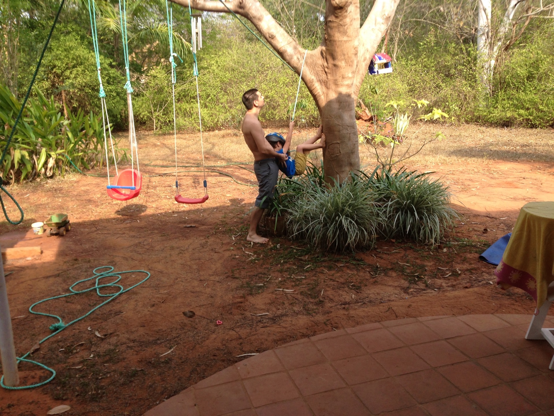 Posted on April 14, 2017 2:58 pmJune 23, 2017 3:03 pmGrimpe! Milo a décidé de grimper dans l’arbre… C’est pas gagné! Après ça, Milo et Sienna ont fait des exercices avec Papa…