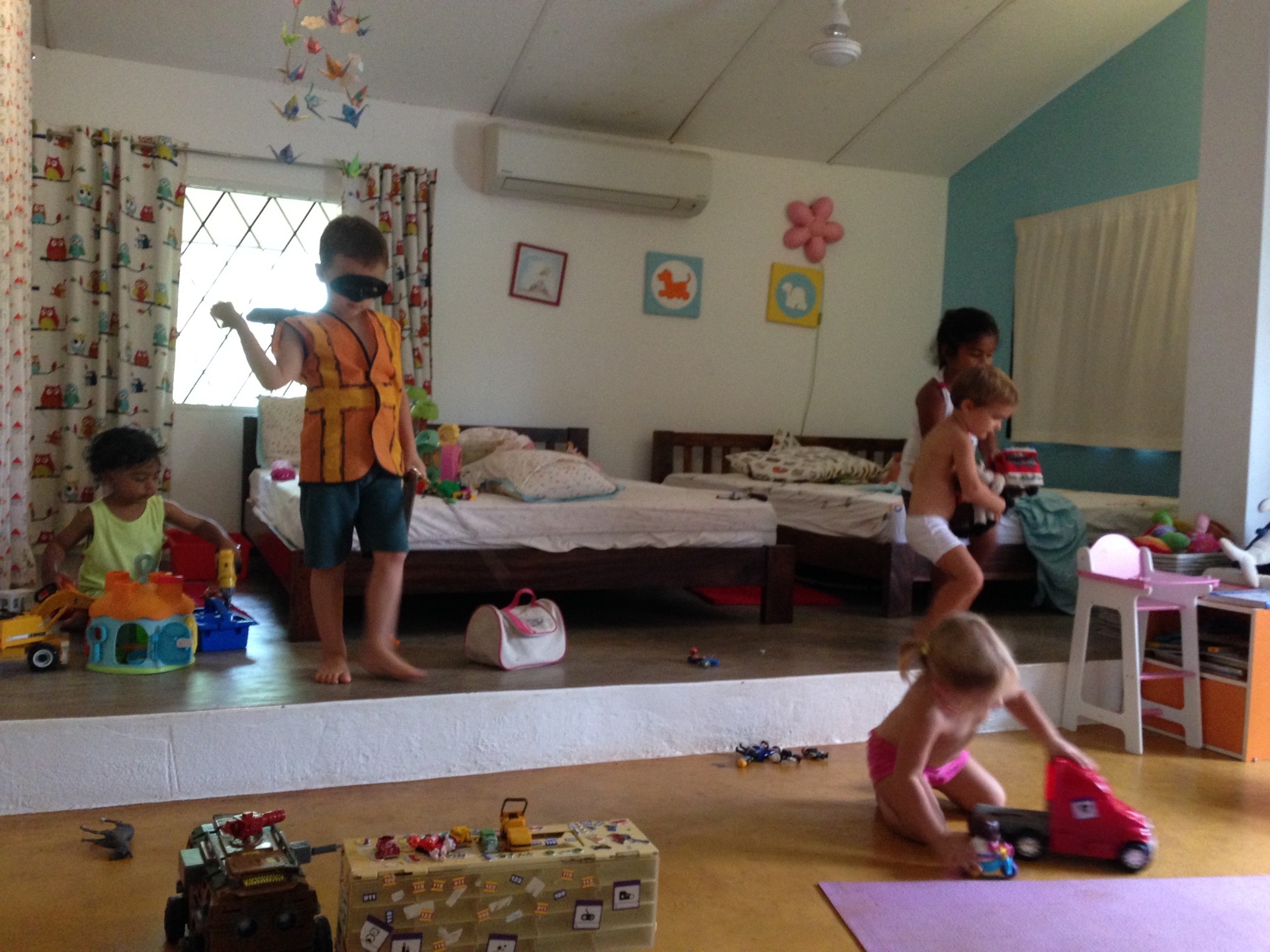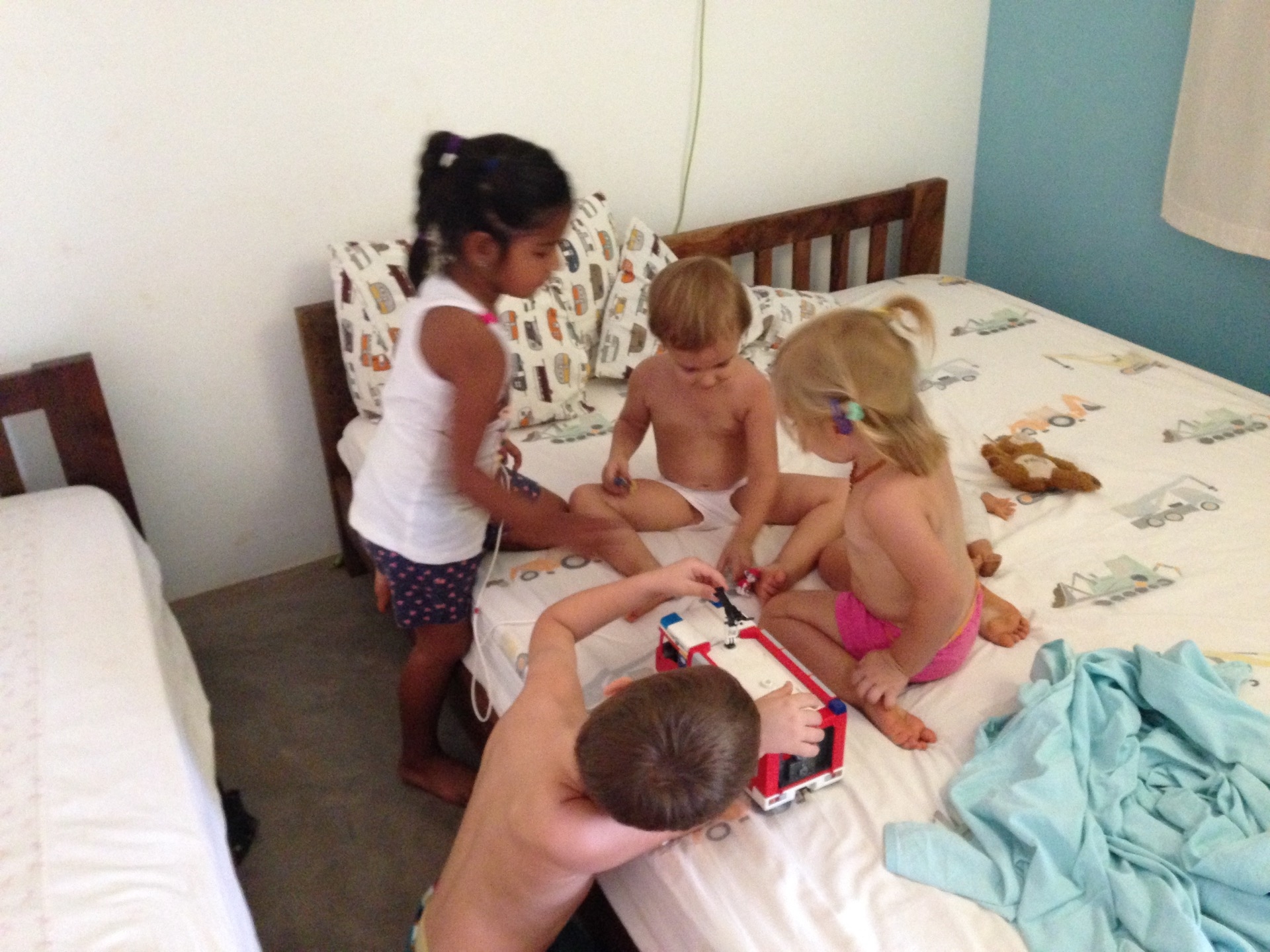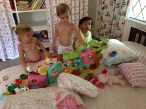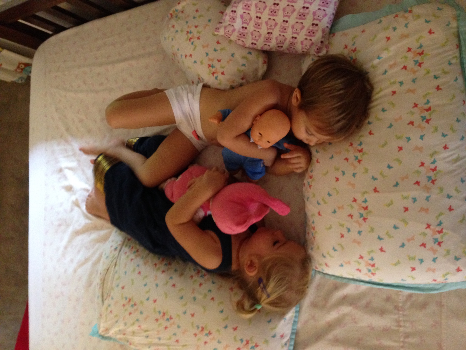 Ce matin, Amiya est à la maison. Avec Sienna elles ont commencées par leur jeu proféré du moment, faire semblant de faire la sieste avec leur bébés…