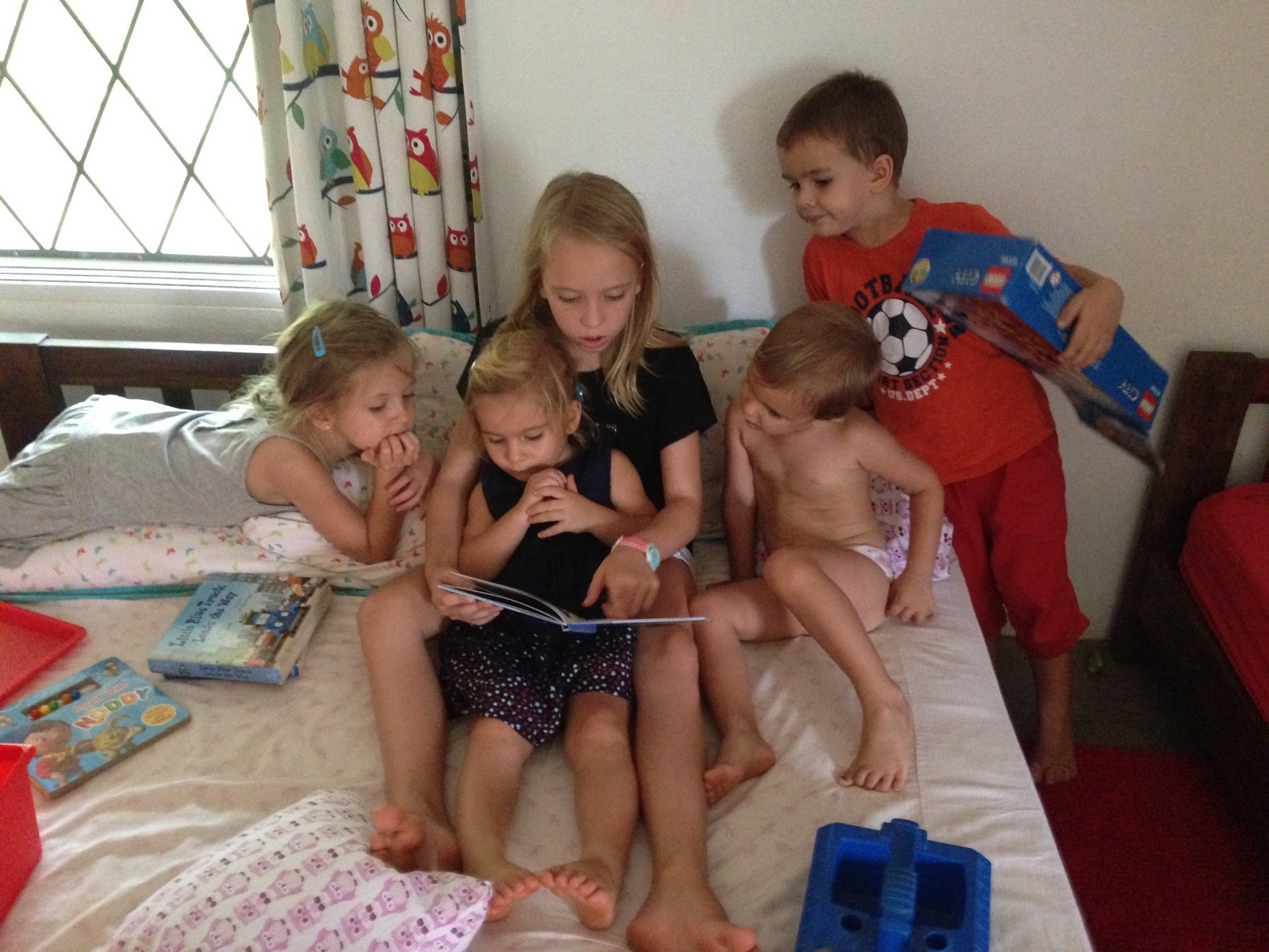 Posted on June 8, 2017 2:57 pmAugust 23, 2017 3:05 pmJeudi… Le jeudi matin la maison est pleine! Moksha, Amiya, Romaya et Ishana! Et ils s’amusent tous très bien!!