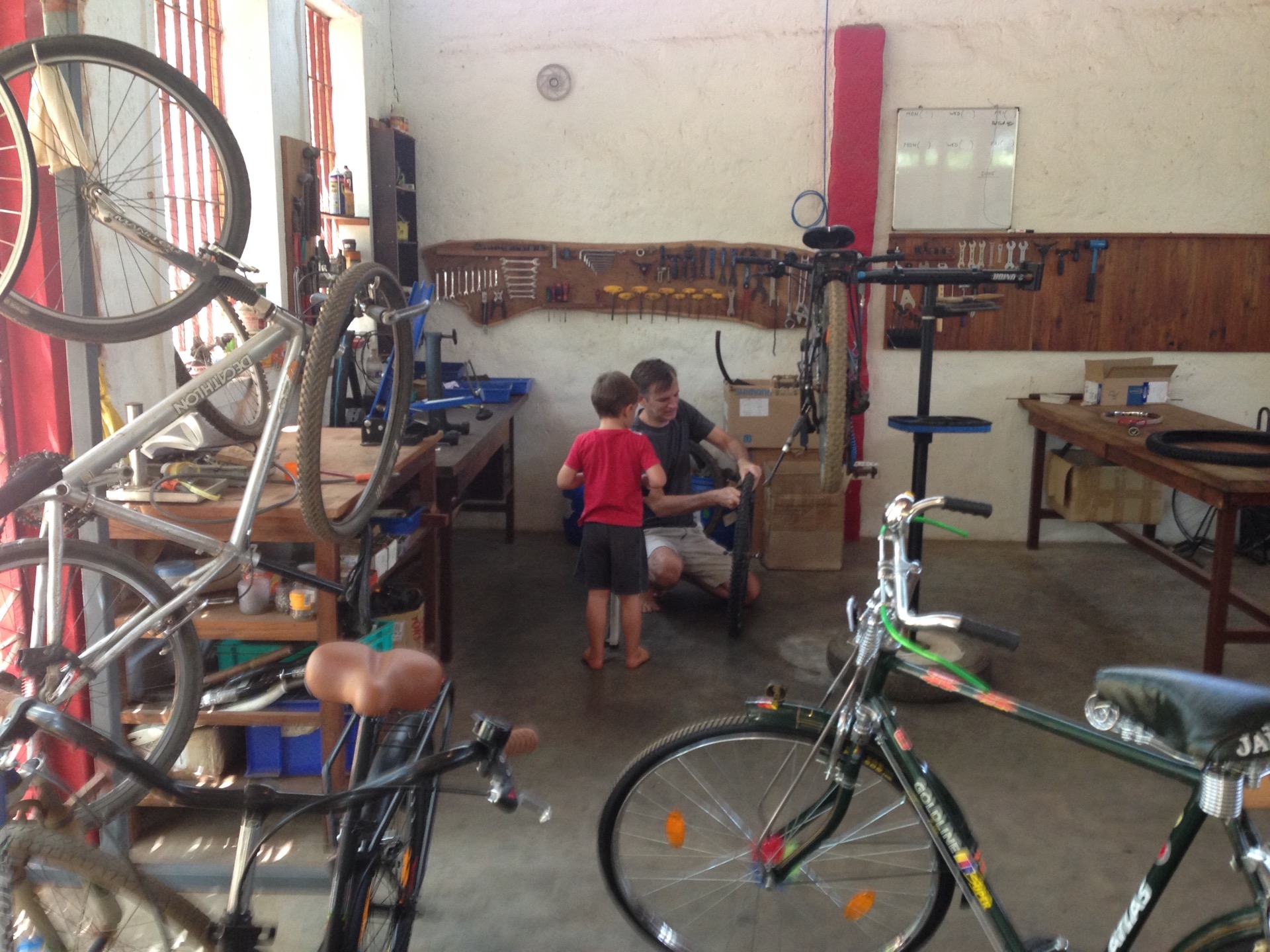 Posted on July 1, 2017 10:55 amJanuary 1, 2018 11:00 amAurovelo Milo aide Satchi a réparer les vélos pendant que Sienna joue au chat… Bref bonne matinée!