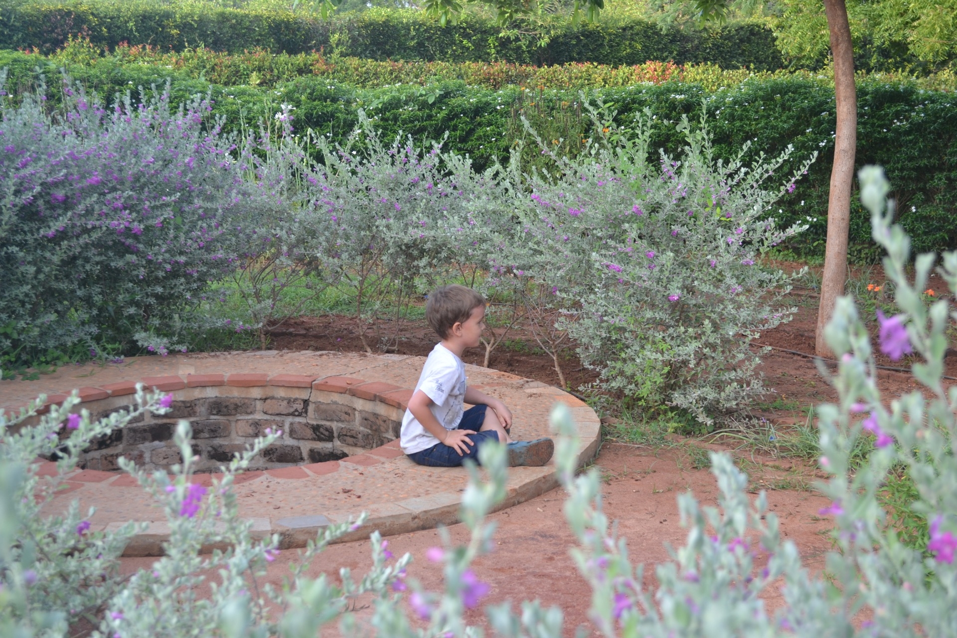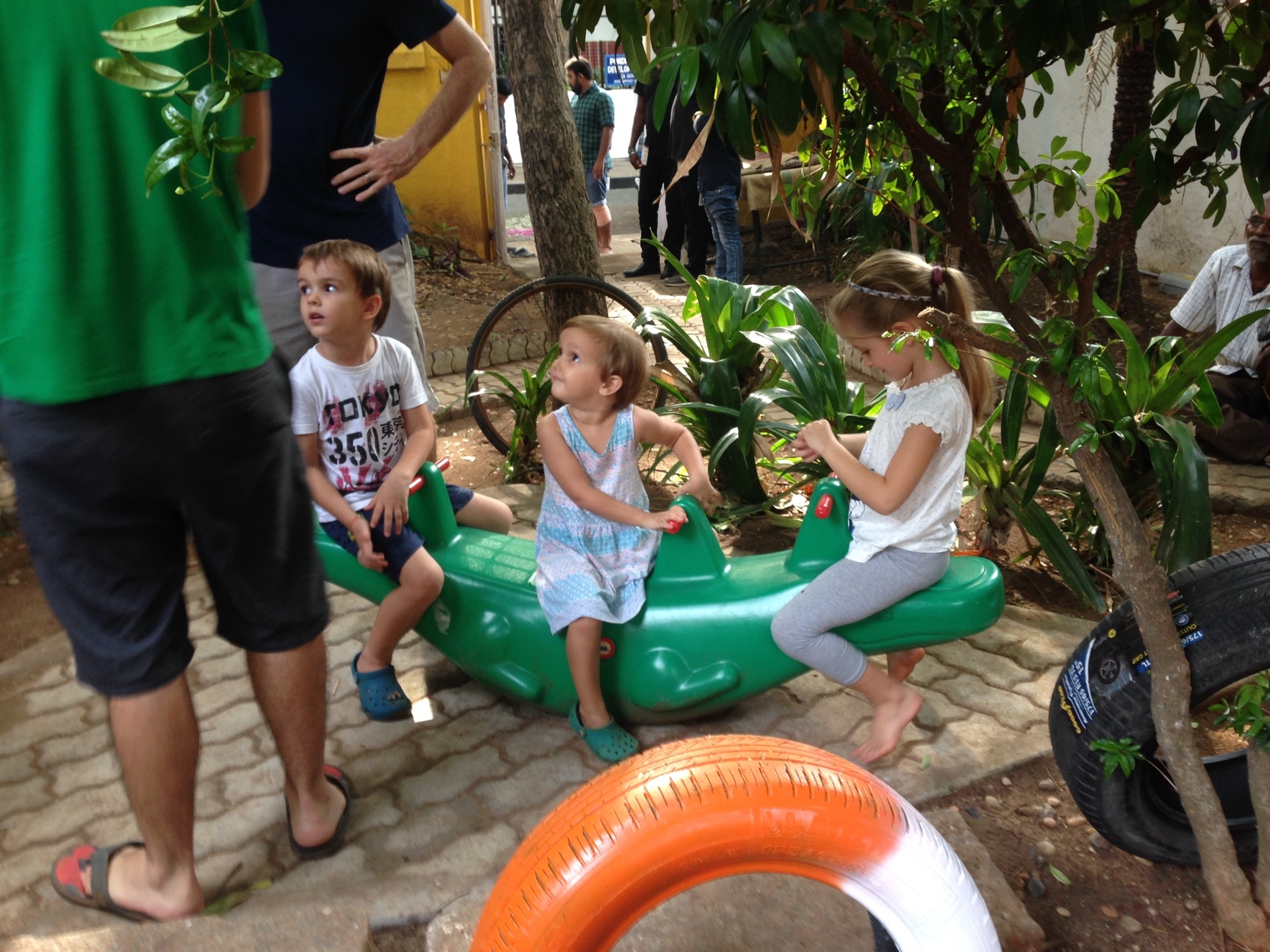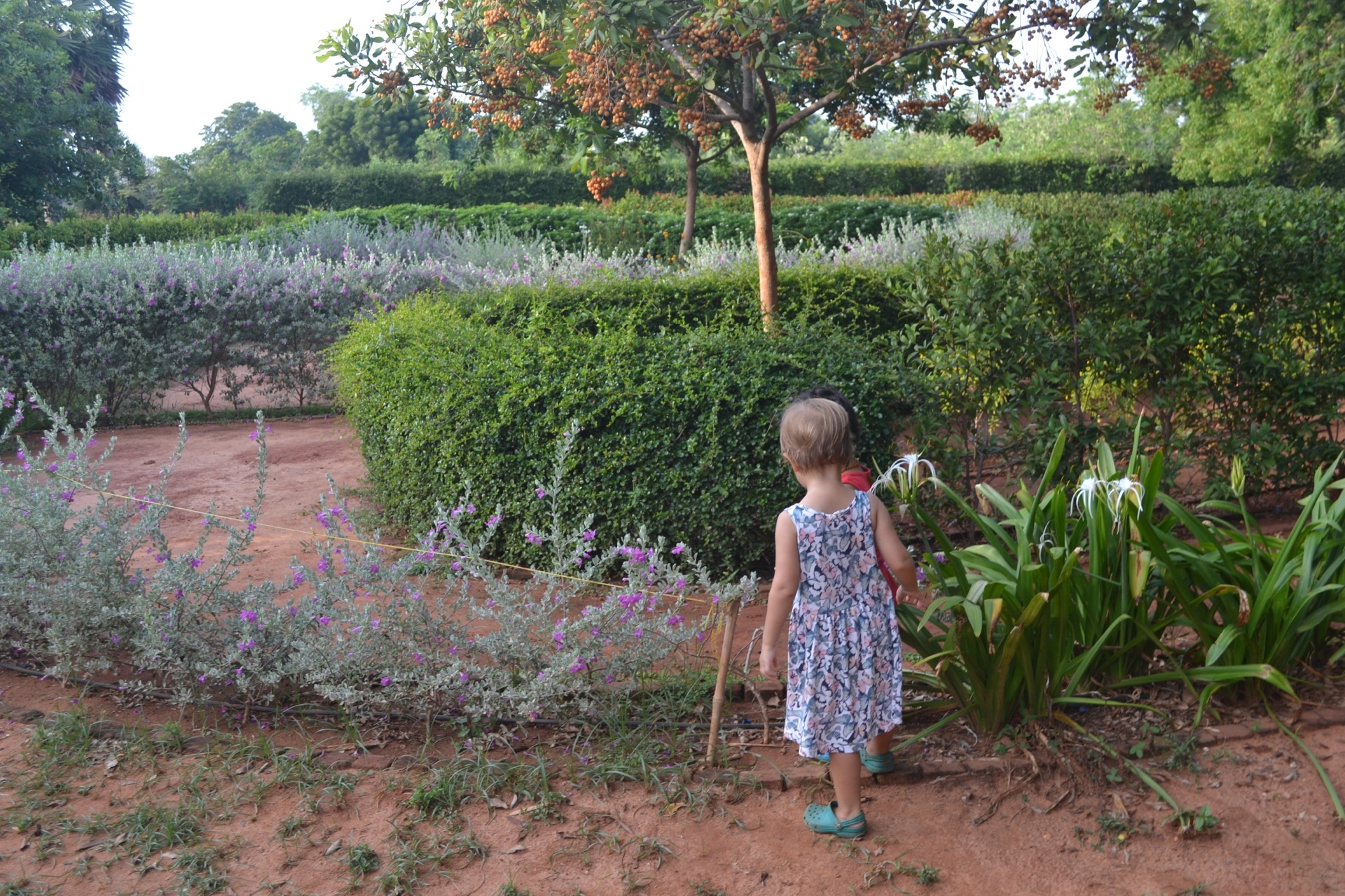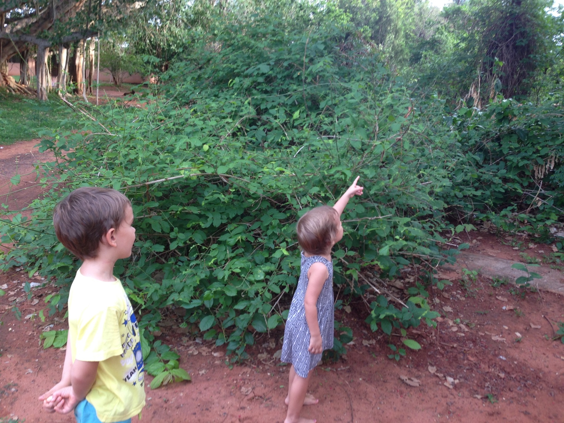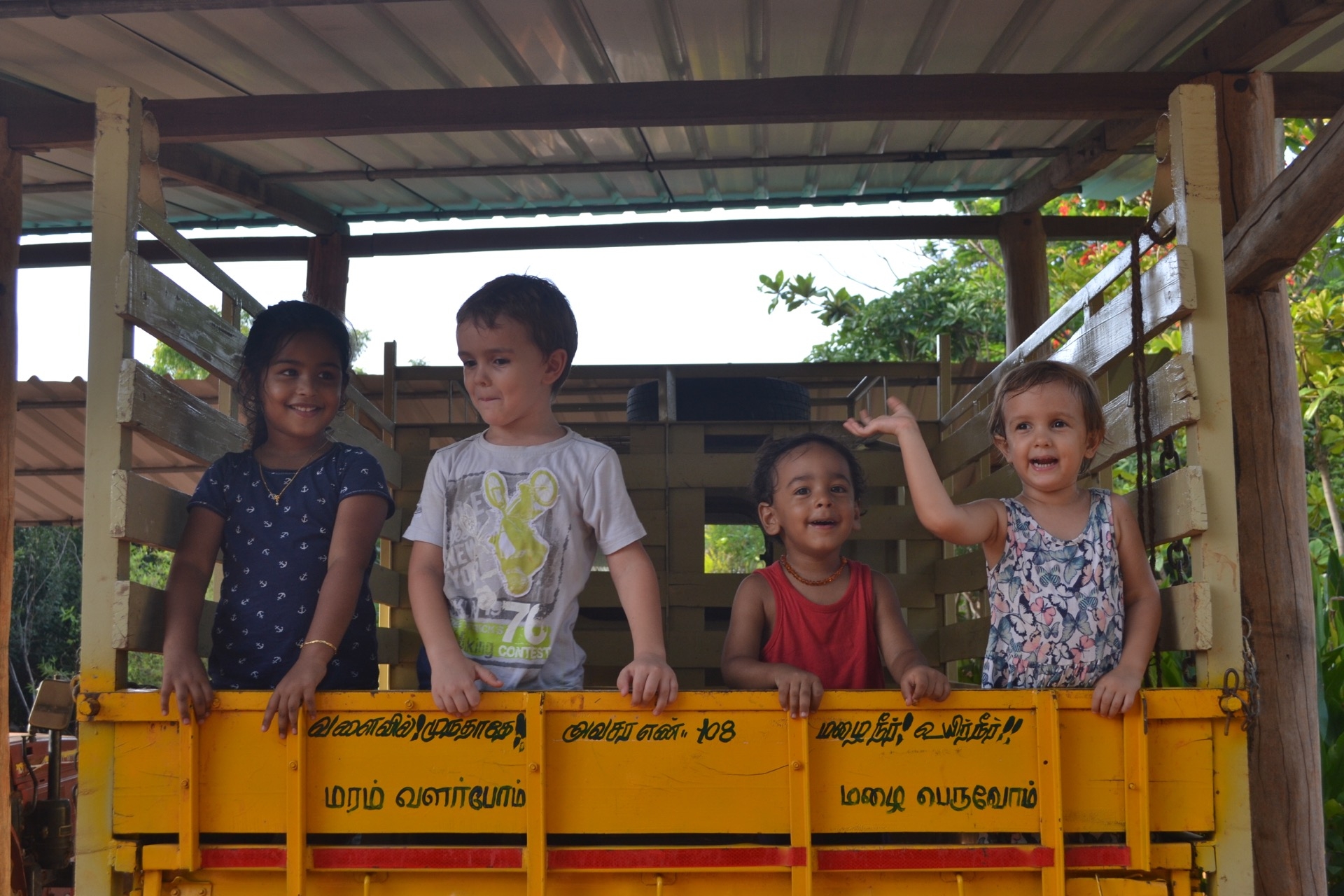 Pendant la promenade au matrimandir, on c’est fait surprendre par une belle averse! Et bien sur, les enfants ont trouvé ca top!