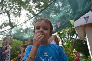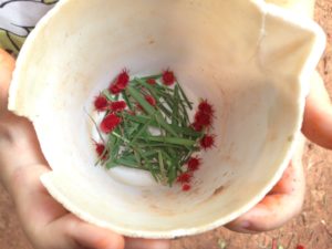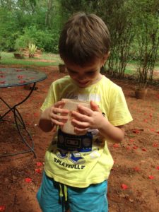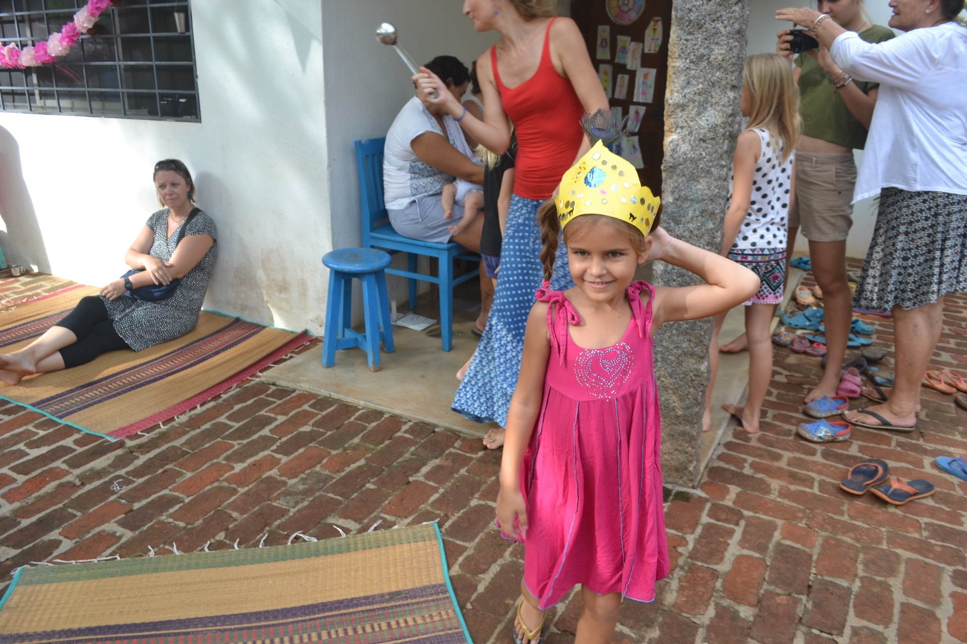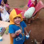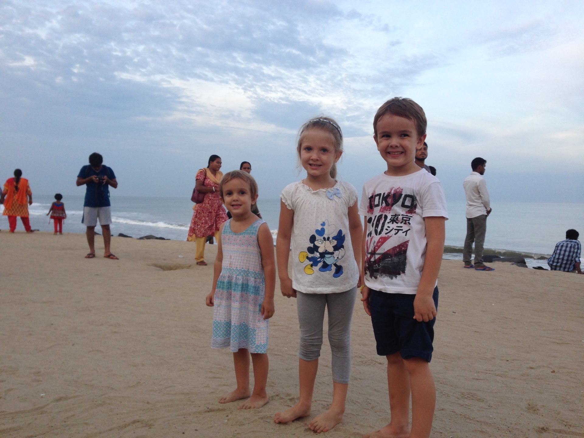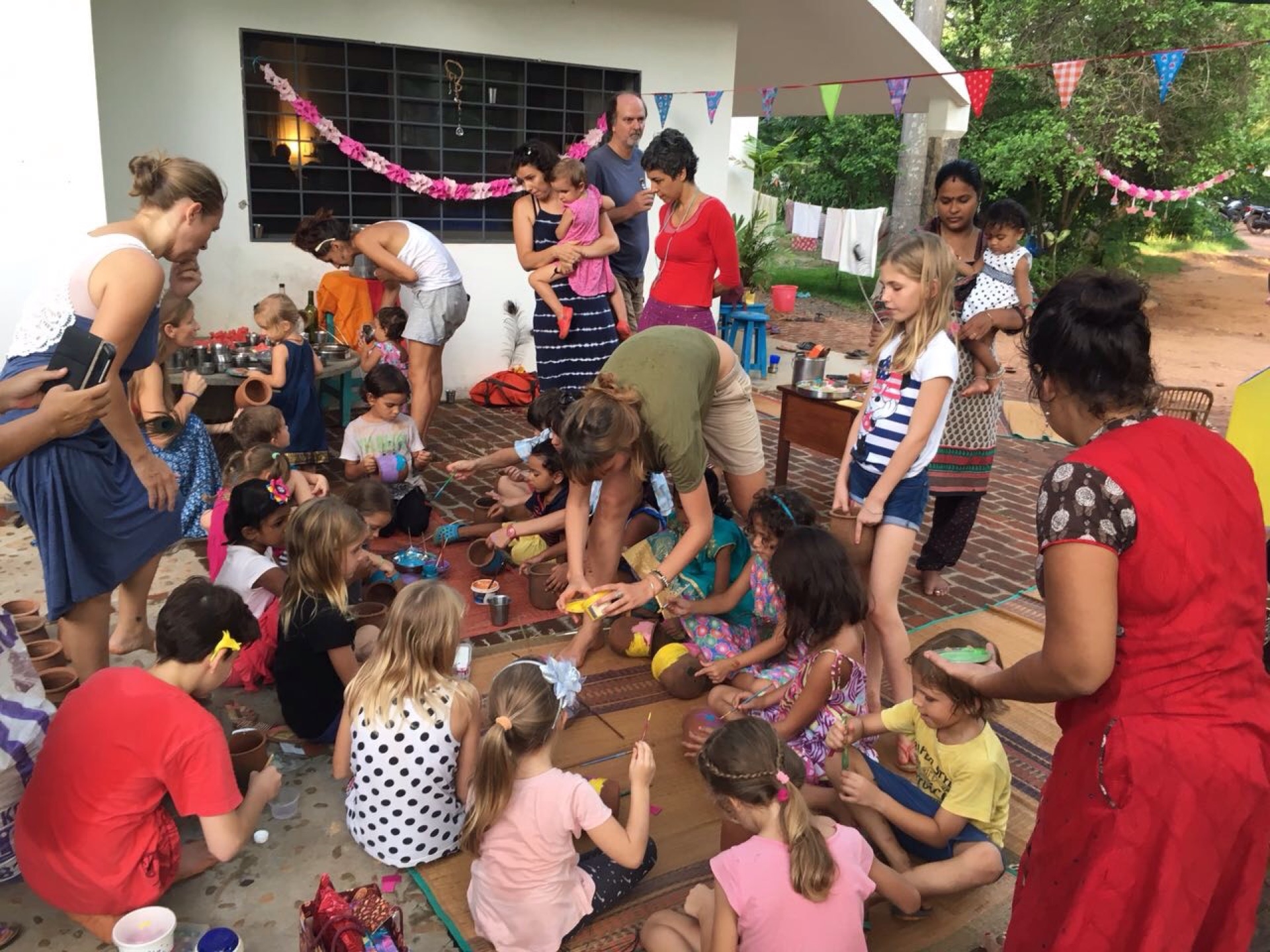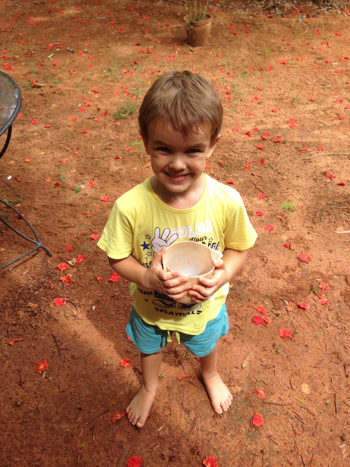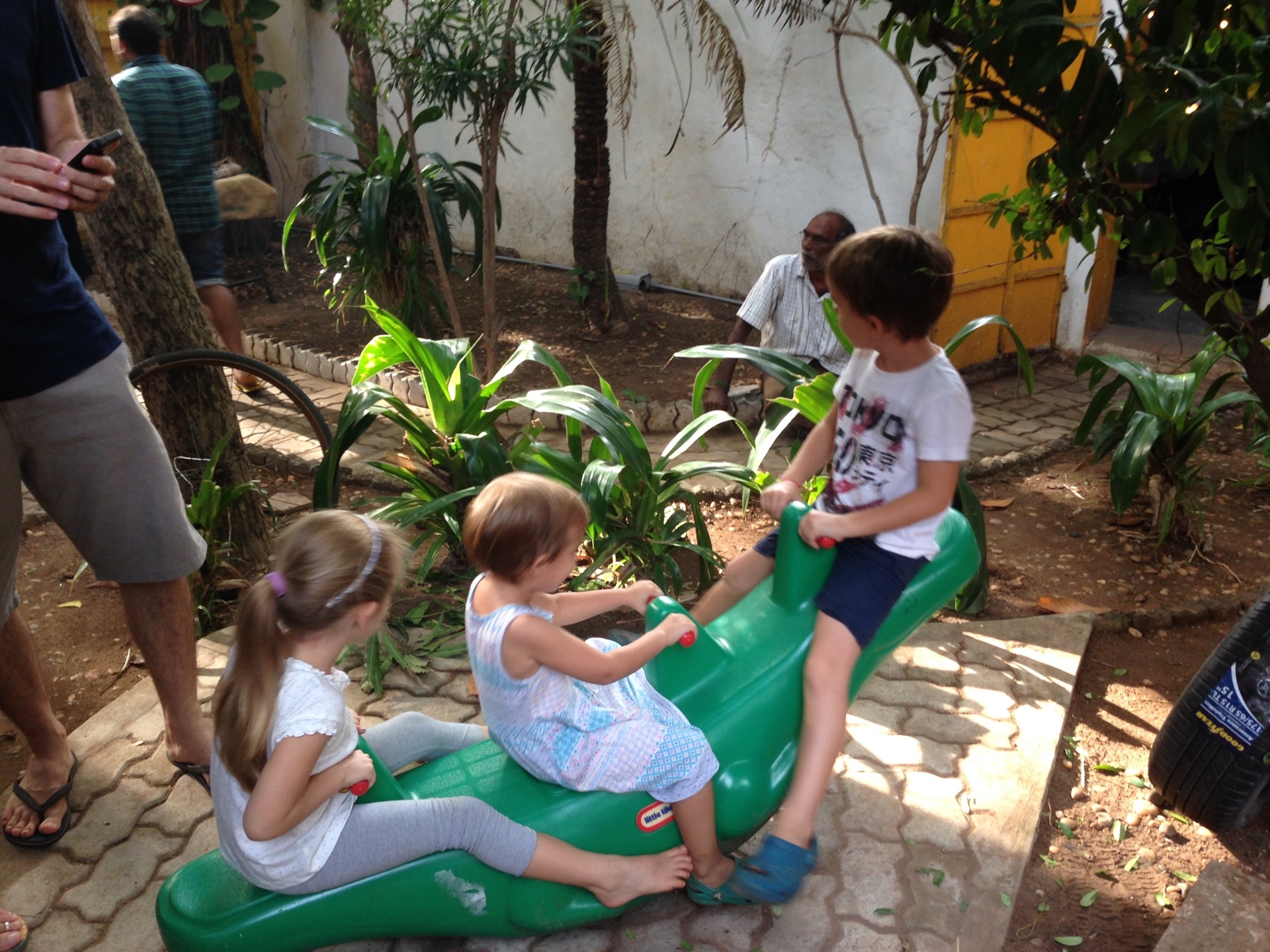 Pendant la promenade au matrimandir, on c’est fait surprendre par une belle averse! Et bien sur, les enfants ont trouvé ca top!