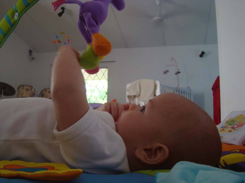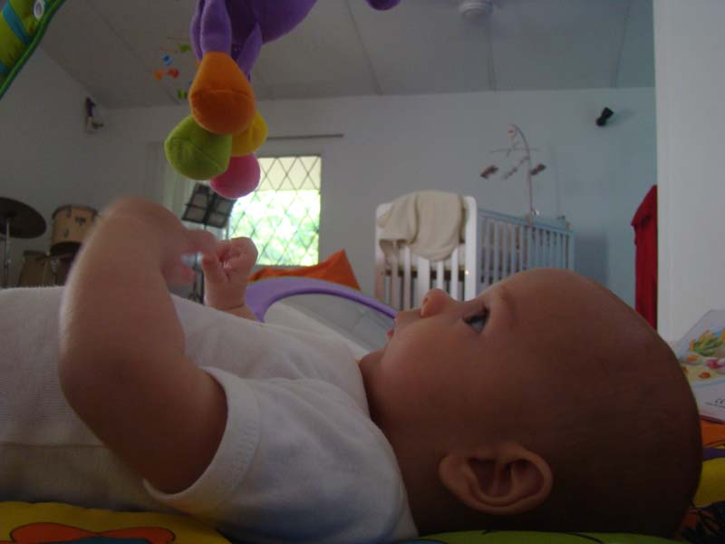 Posted on March 6, 2012 4:25 pmMarch 27, 2012 6:24 pm by ShandraConcentré Milo reste maintenant de plus en plus longtemps seul sur son tapis d’éveil. Il se concentre fort pour tout attraper!