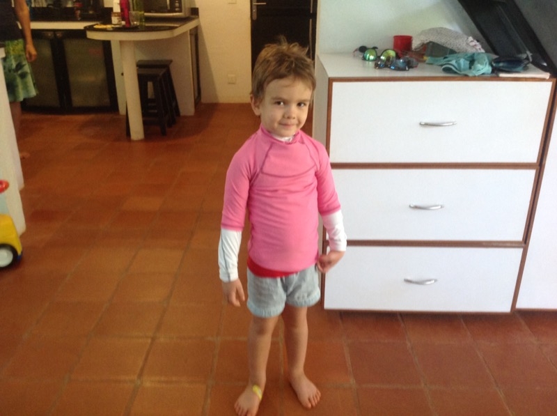 Posted on August 15, 2016 2:15 pmNovember 17, 2016 2:39 pm by ShandraCouvert! On nous a donné des tee-shirts pour la piscine, et Milo a décider de tous les mettre!