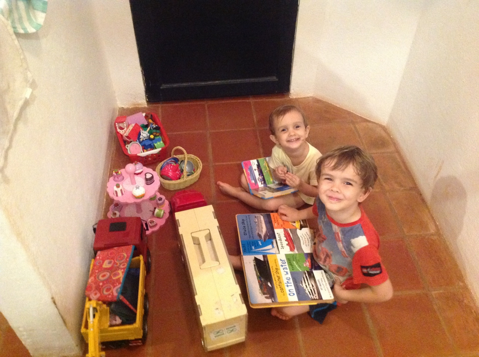Posted on December 5, 2016 2:53 pmMarch 23, 2017 2:57 pm by ShandraDemenagement Voici le nouveau jeu chez nous: Ils prennent la plus part des jouets du bureau, et déménagent dans ‘leur maison’, le couloir des toilets…