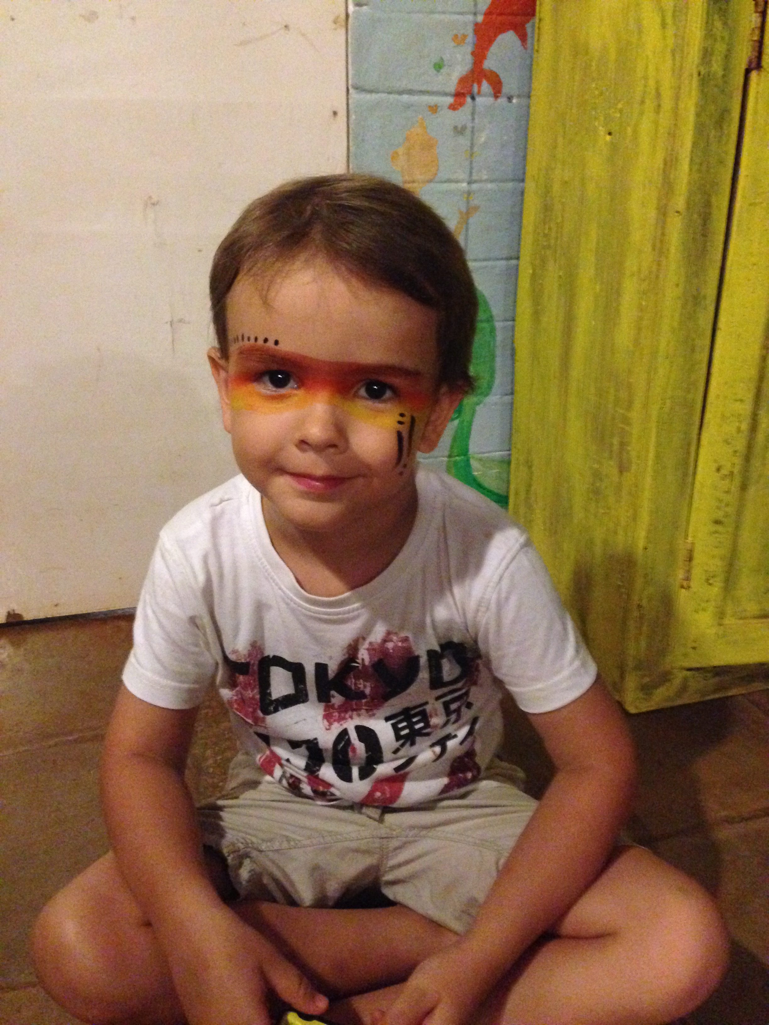 Aujourd’hui c’est le grand jour! Ce soir, Sienna est resté avec papa (elle n’aime pas trop les spectacles bruyants), et Milo et moi sommes aller nous préparer chez Nicole. Pour commencer, le maquillage: