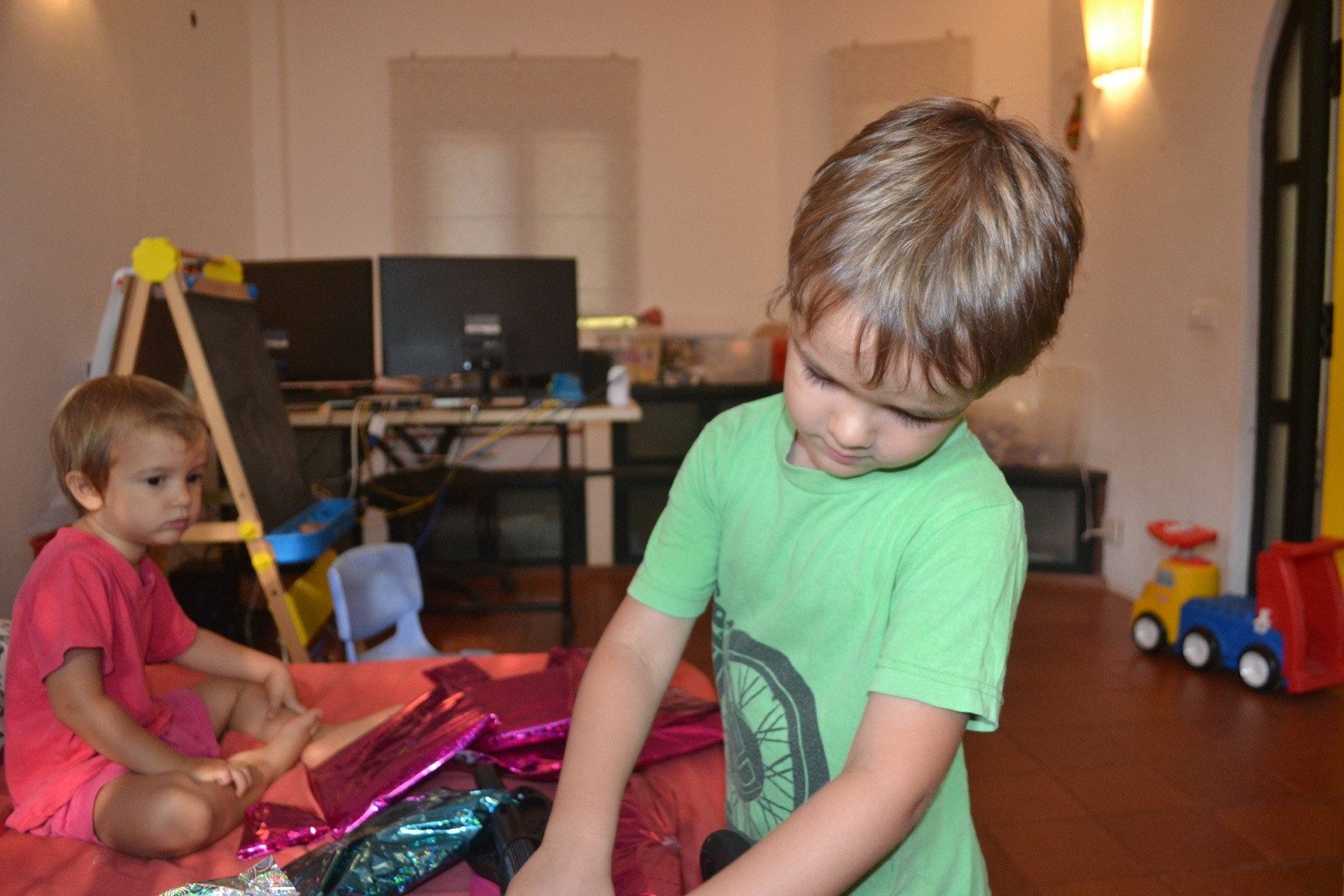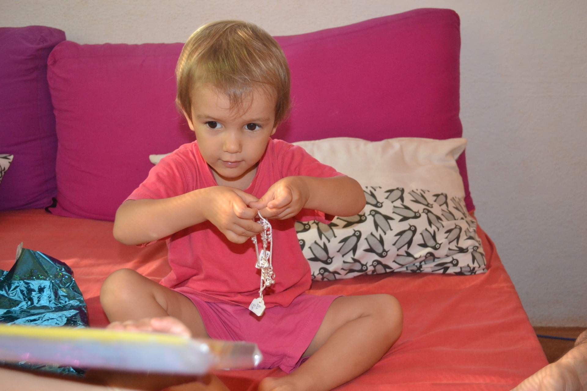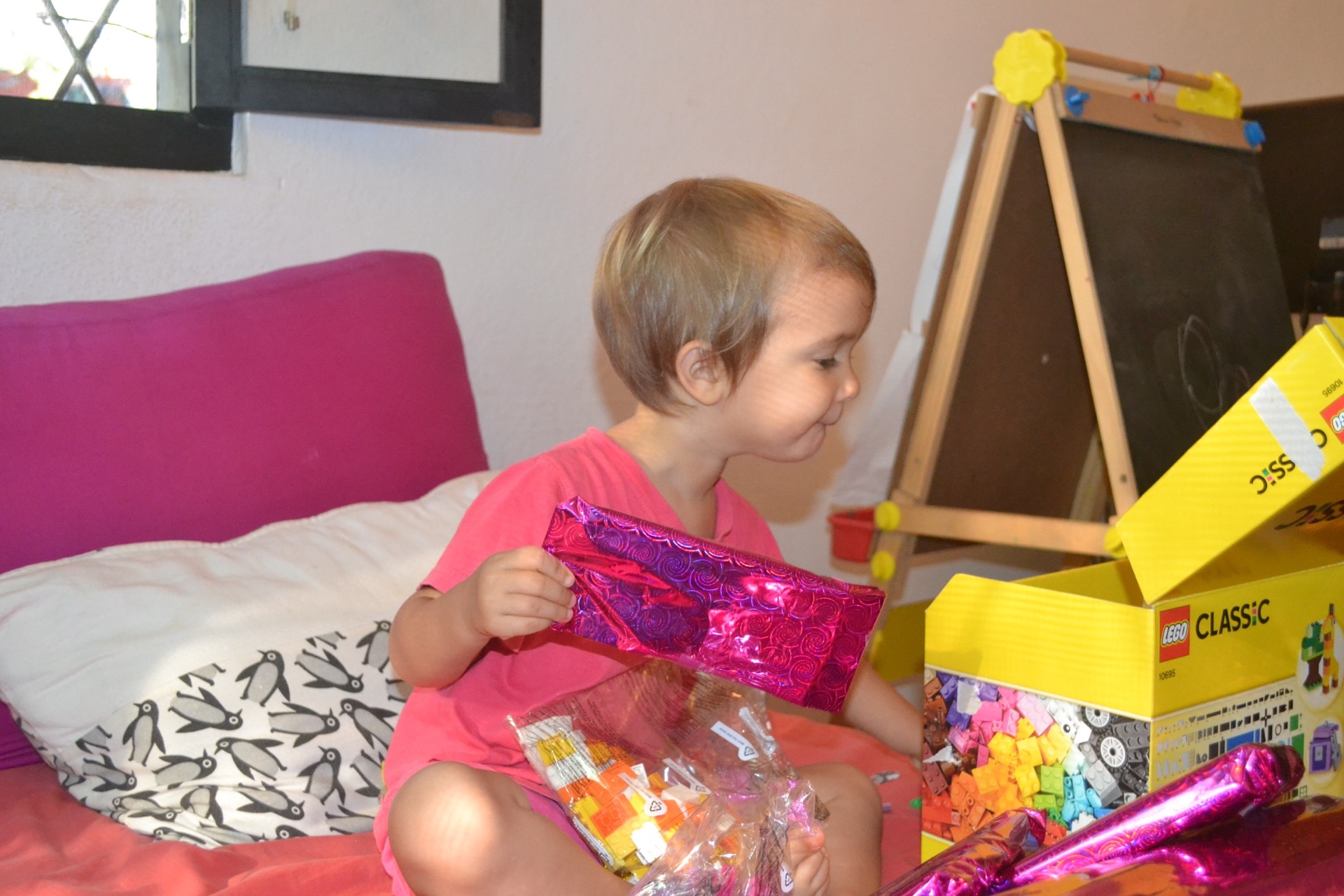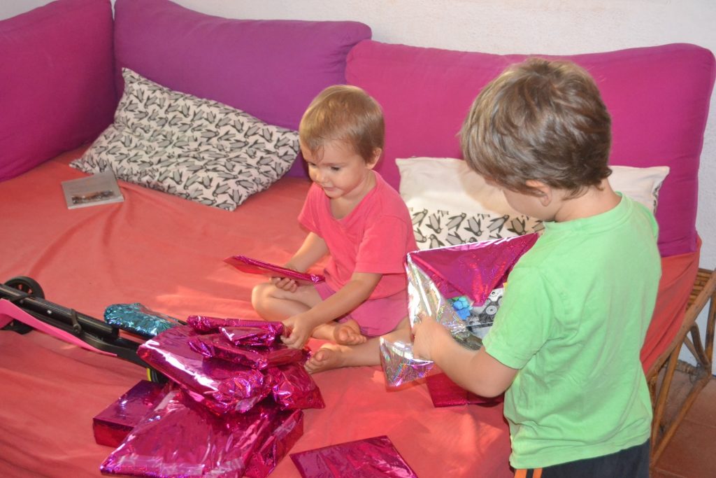 Elle a eu de la pâte à modelé, des bracelet de pieds, des perles pour faire des colliers, une super trottinette, des Lego et des jouets pour la piscine!