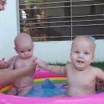 Posted on April 1, 2012 8:00 amMarch 25, 2012 9:44 am by ShandraChez Siloé On est allé rendre visite à Siloé, et on l’a trouvé dans sa piscine! Milo a trouvé l’eau un peu froide, par contre il a adoré les doigts de Babu: