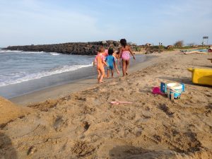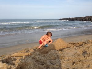 Cet apres midi, encore la plage! Et quelles aventures on a eu: On a construit des chateaux forts, trouvé des os de dinosaure échoué sur la plage, joué aux pirates sur les bateaux, et pour terminer en beauté, on a vu les bateaux qui rentraient de la pêche et qui se faisaient remorquer par un tracteur!
