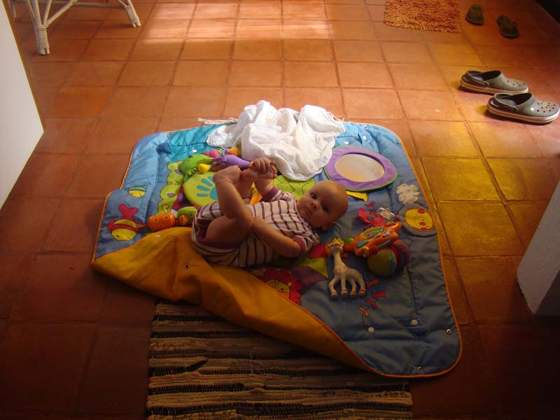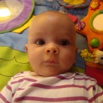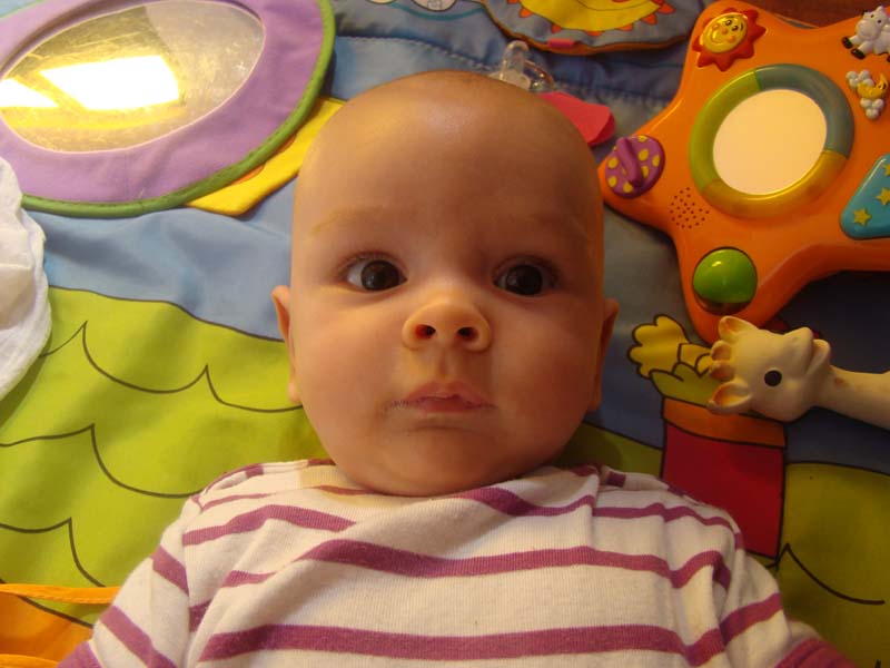 Milo est en train d’avoir sa première dent (celle d’en bas à droite)!