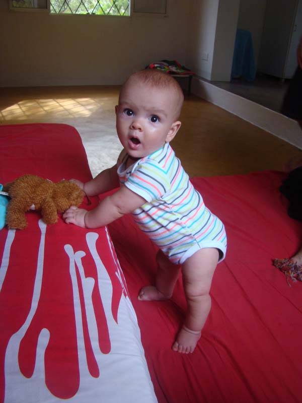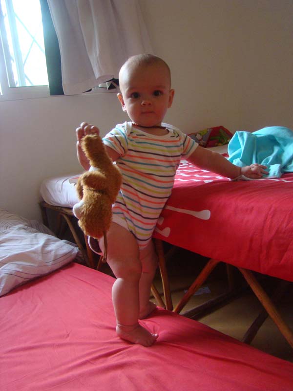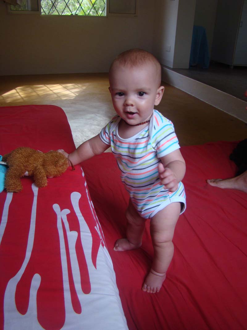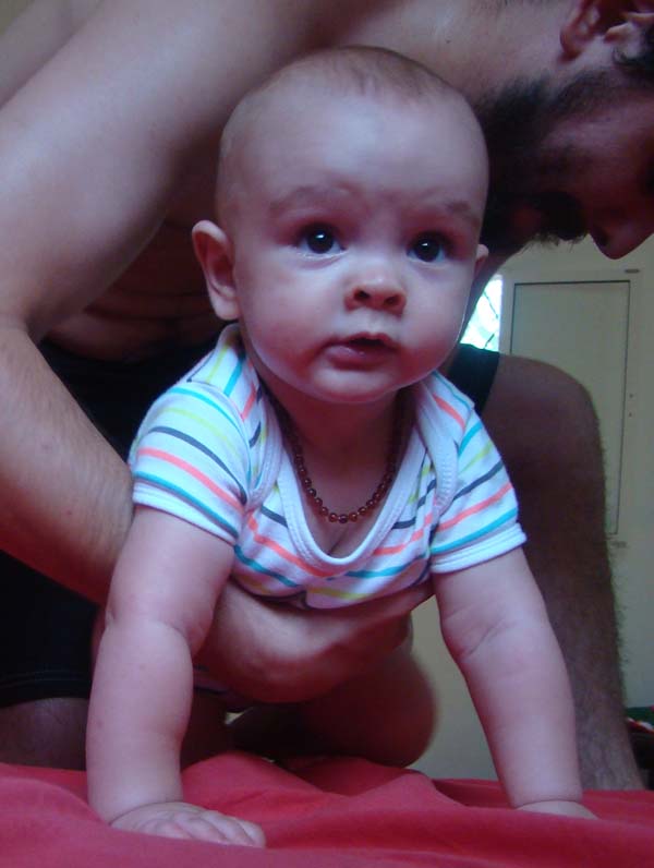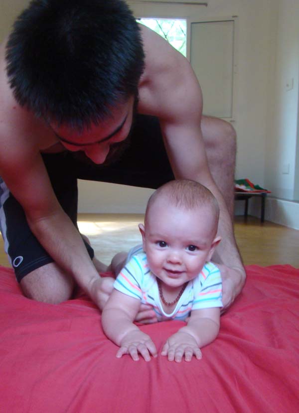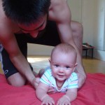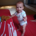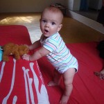 Posted on July 17, 2012 10:56 amAugust 7, 2012 2:16 pm by ShandraOn y va Comme Milo avance de plus en plus vite en rampant, il n’est pas très interessé avec le quatre pattes. Heureusement que Papa et là pour lui donner quelques cours de rattrapage! Il aime aussi être debout, surtout lorsqu’il peut le faire tout seul.