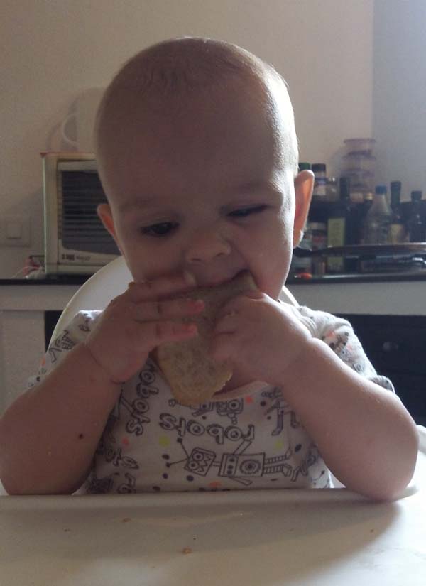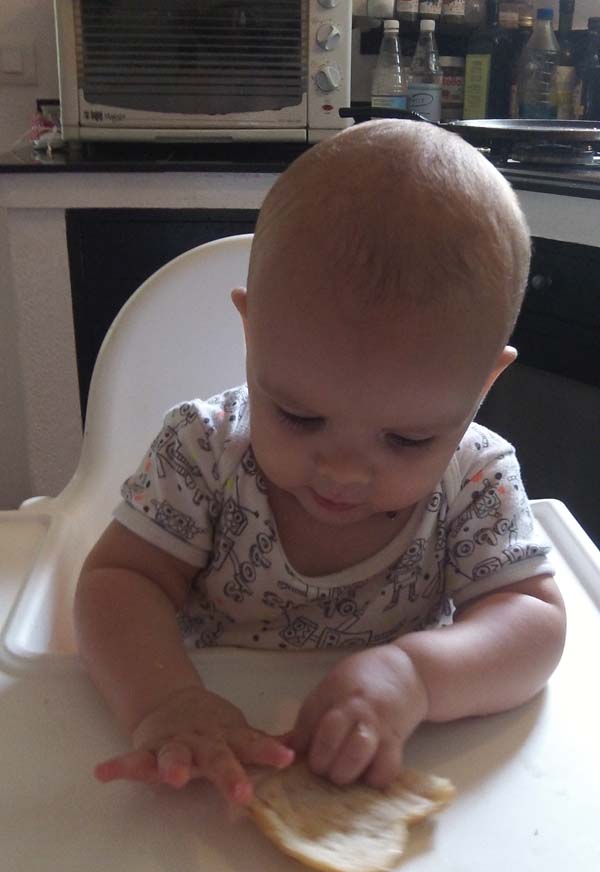 Posted on August 3, 2012 3:02 pmAugust 7, 2012 2:01 pm by ShandraDu pain! On a commencé a donner du pain à Milo. Heureusement que son père était là pour la démonstration: Milo a bien compris: