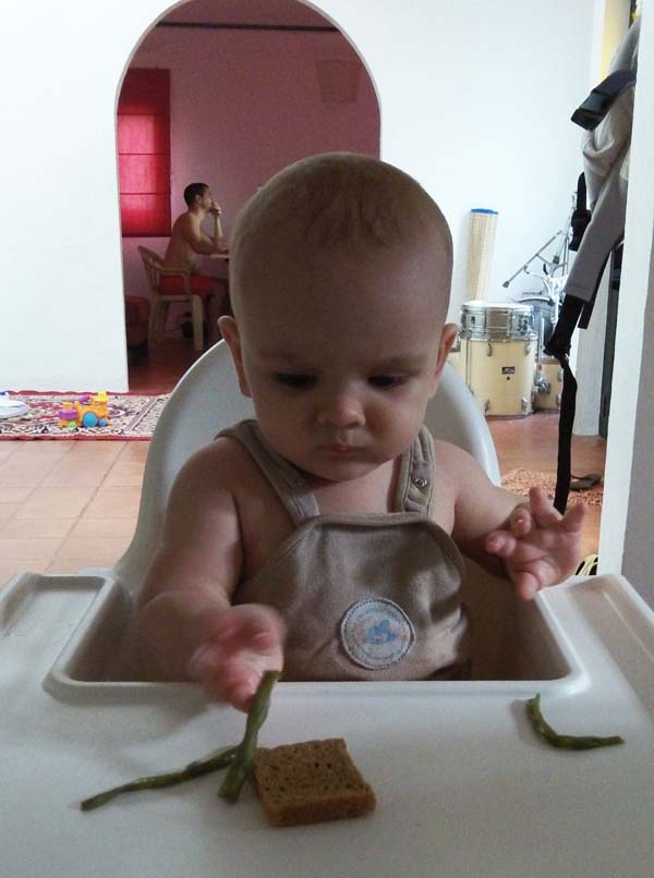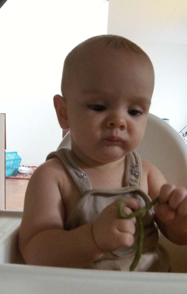 Avec ses dents qui sortaient, Milo ne voulait pas manger grand chose depuis quelques semaines. Donc j’ai essayé de lui donner des aliments qu’il puisse manger tout seul.