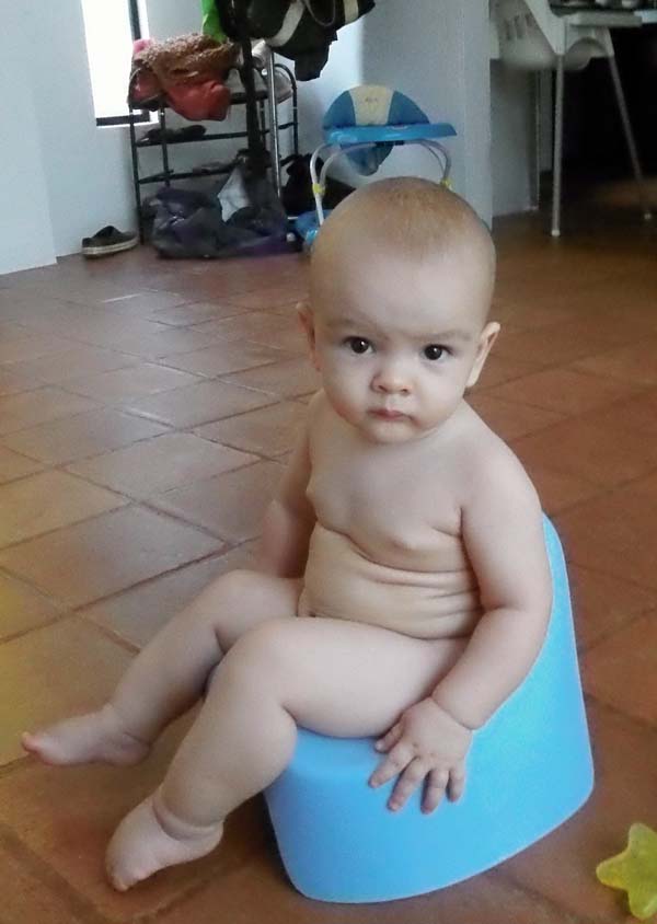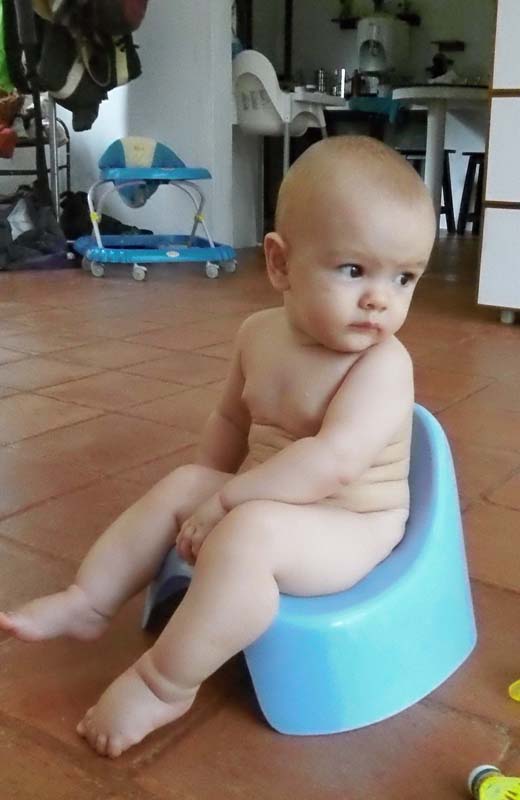 Depuis que l’on met Milo sur le pot matin et soir, plus un seul caca dans la couche! Youpi!!