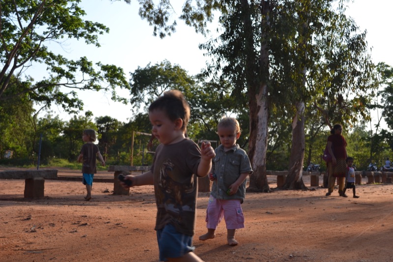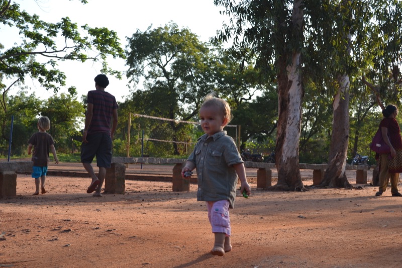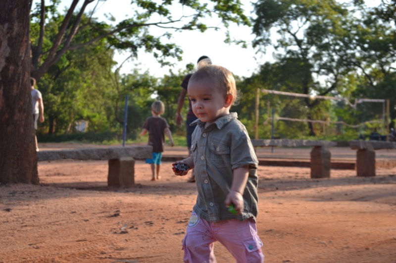 Là-bas, il fait le fou avec Nima, court dans tous les sens, joue aux petites voitures, parle avec Moksha…