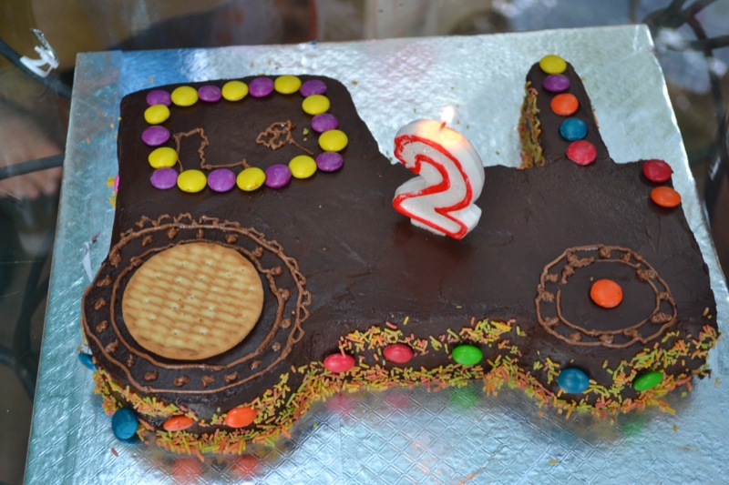 Il y avait plein de gâteaux: un au chocolat, un aux fraises, et un gâteau tracteur!