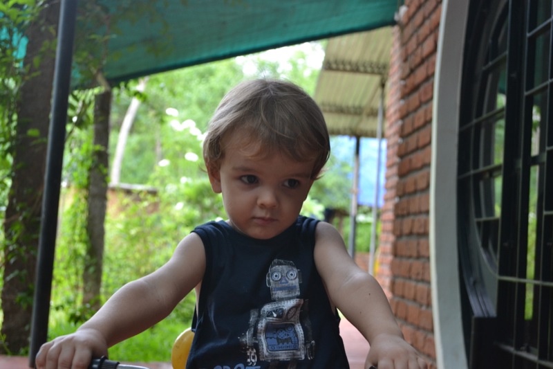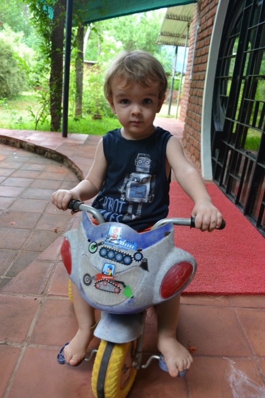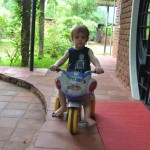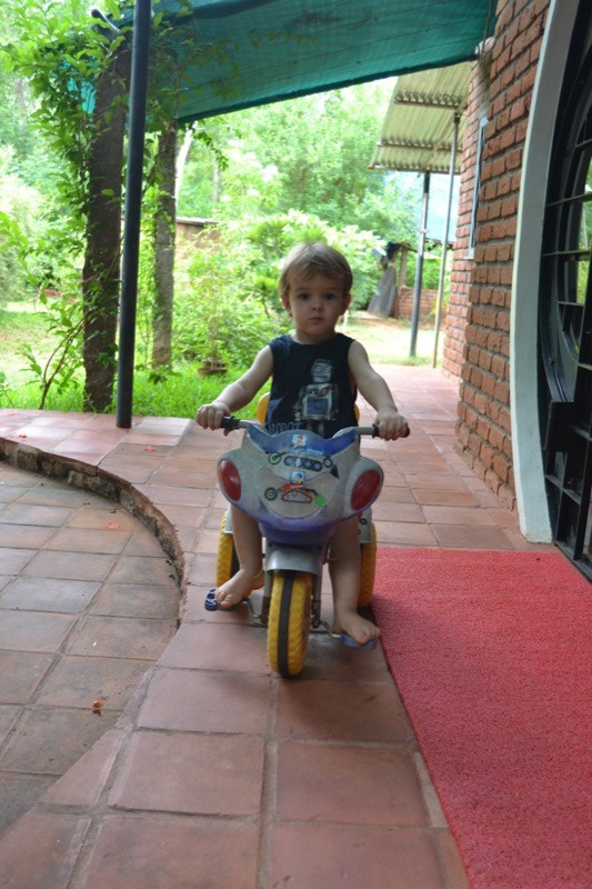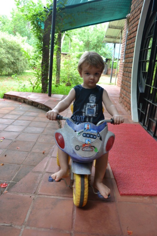 Milo passe ses journées sur ses vélos ou sa moto, et on essaye de lui expliquer comment utiliser les pédales, mais ça ne semblait pas l’intéresser… Et puis, d’un jour à l’autre il s’y est mis et maintenant il ne fait plus que ça! Et à grande vitesse bien sur!