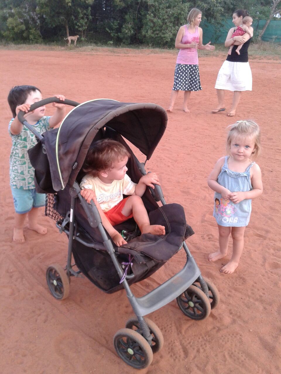 Posted on August 1, 2014 10:34 amAugust 18, 2014 10:38 am by ShandraLa poussette On nous a donné une poussette pour Sienna, mais elle n’aime pas trop être dedans, donc c’est les grands qui jouent avec!