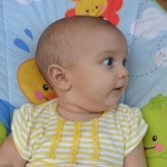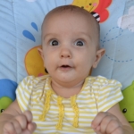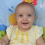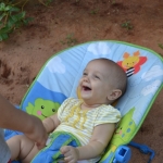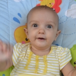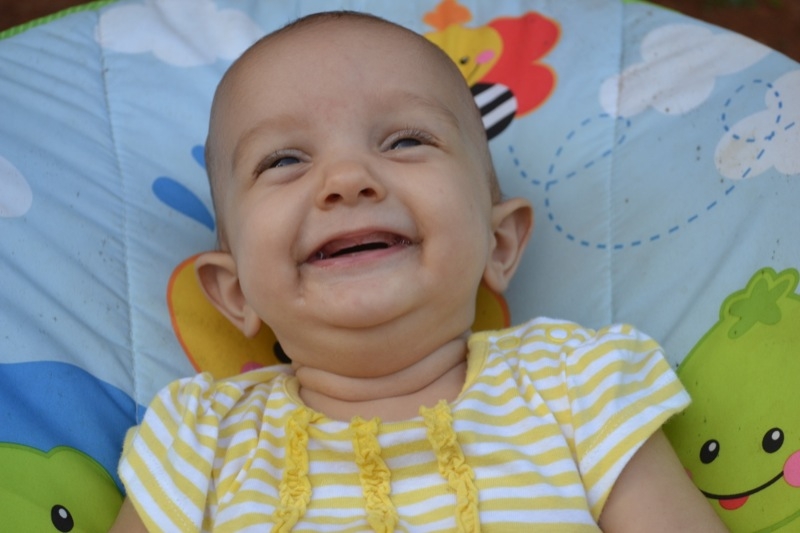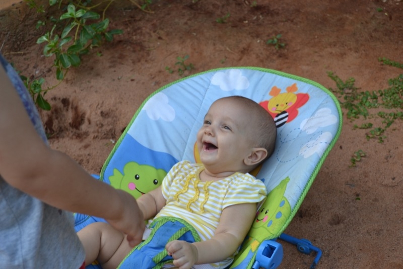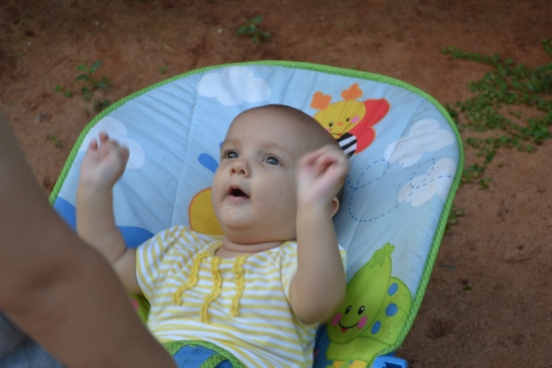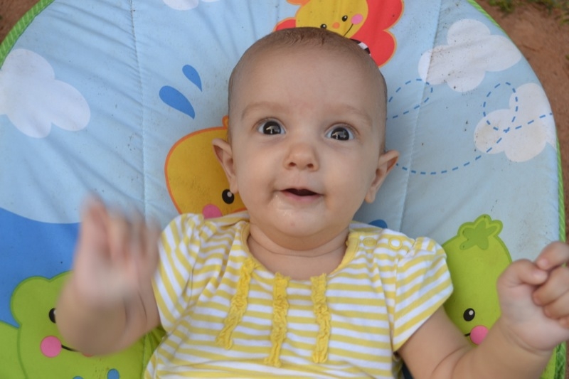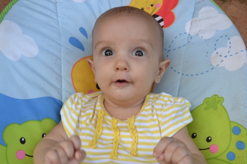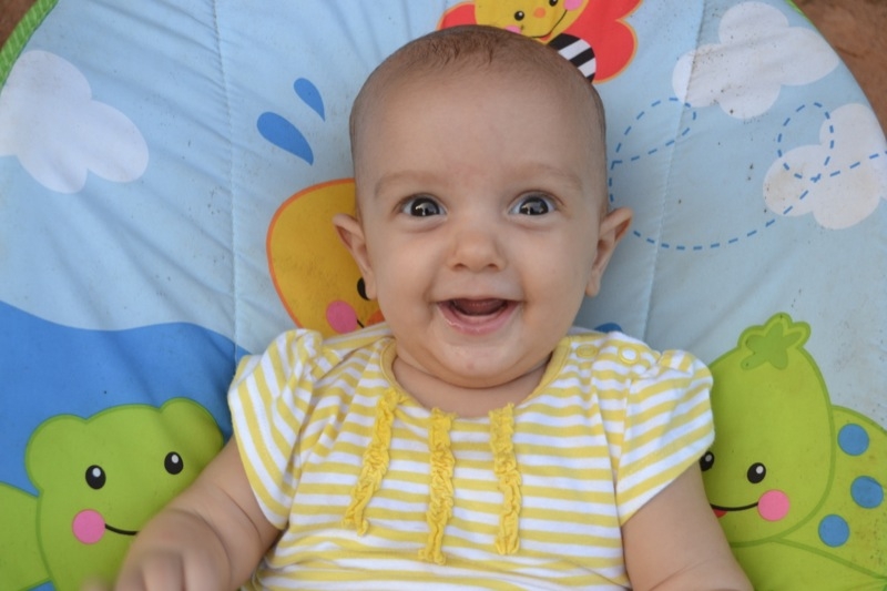 Elle est toujours aussi souriante, et rit de toutes les pitreries que Milo fait! Elle dort encore beaucoup, 4 à 5 siestes par jour, de 45 minutes à 2 heures, et se couche à 7.30h pour se réveiller à 6.30h.