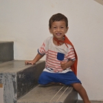 Milo a bien voulu se déguiser cette fois, mais en basketballer, comme papa! Il avait aussi les chaussures et le ballon, mais ils sont resté dehors.
