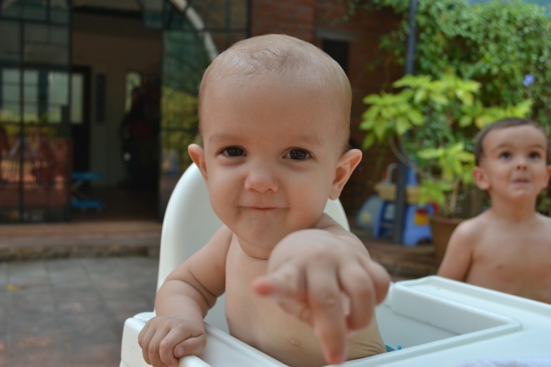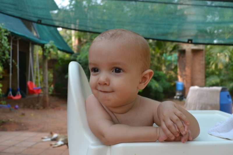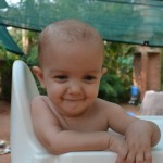 Bientôt un an! Comme ça passe vite! Sienna n’a pas pris beaucoup de poids de nouveau ce mois-ci, mais elle a bien grandi.(7.350k pour 72 cm). Il faut dire qu’elle commence à bien manger, mais surtout pas de purées! Mademoiselle aime manger ce que nous mangeons. Ca y est, elle arrive enfin à avaler de petits bouts.
