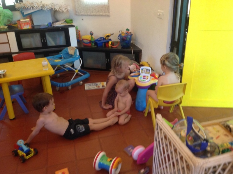 Trois matin par semaine, Milo va jouer chez des amis, et les autres matins, ils viennent ici! L’ après midi, on a le droit a de grosse siestes, entre deux et trois heures pour Milo ET sienna, puis on fini la journée a certitude ou au matrimandir…